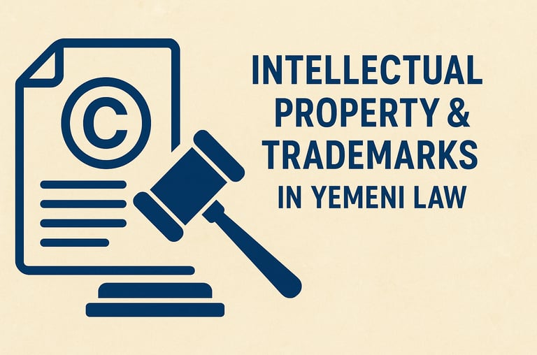 تتضمن القوانين اليمنية تشريعات خاصة لحماية الملكية الفكرية والعلامات التجارية. تشمل هذه القوانين الإجراءات الضرورية لتسجيل العلامات التجارية، منح الحقوق الحصرية لأصحاب العلامات، وطرق إنفاذ تلك الحقوق. يتطلب تسجيل علامة تجارية في اليمن تقديم طلب لمكتب حماية الملكية الفكرية، الذي يتولى فحص الطلب ومدى تميّز العلامة. بعد اجتياز كافة المراحل، تُسجل العلامة وتُمنح الحماية القانونية اللازمة، مما يعكس التزام اليمن بحماية حقوق المبدعين.